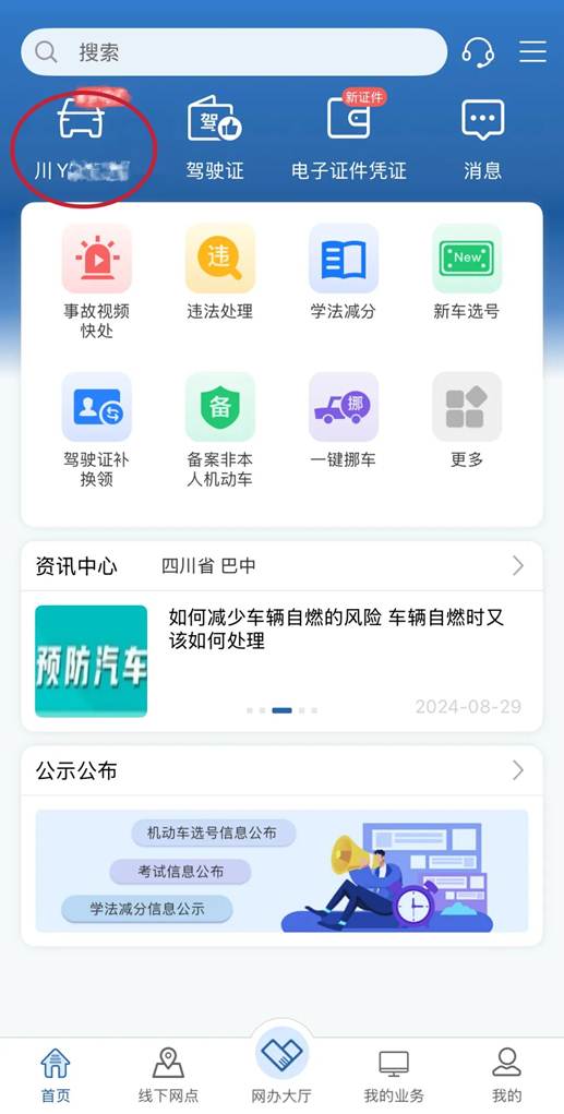 登录“交管12123”APP,在首页查询机动车检验有效期。如车辆已临近有效期,APP还将推送办理业务相关提示信息。