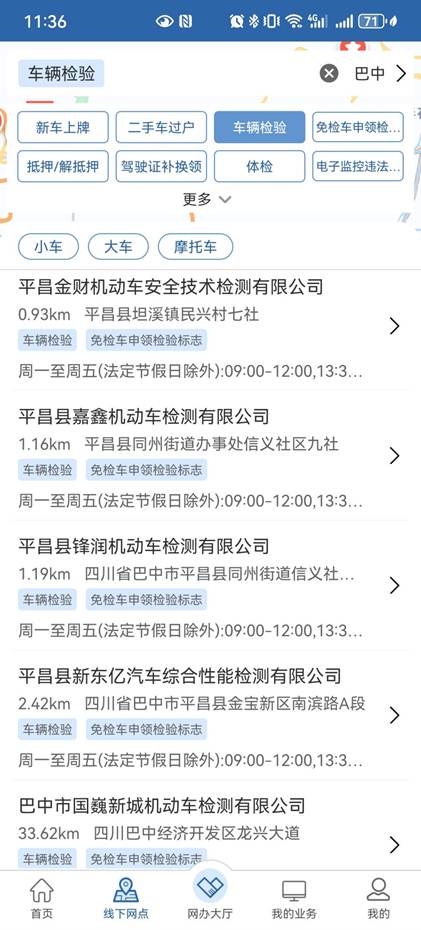 您可登录“交管12123”手机APP,在“线下网点”—“车辆检验”栏目查询获取全市机动车检验机构地址等信息,就近选择站点前往验车。如需预约检验服务的,可在“更多”—“业务中心”— “机动车业务”板块