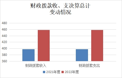 2022年度收、支总计458.4万元。与2021年相比,收、支总计各增加60.82万元,增长15.3%。主要变动原因是新增职工5名,工资福利支出和公业务费支出相应增加。