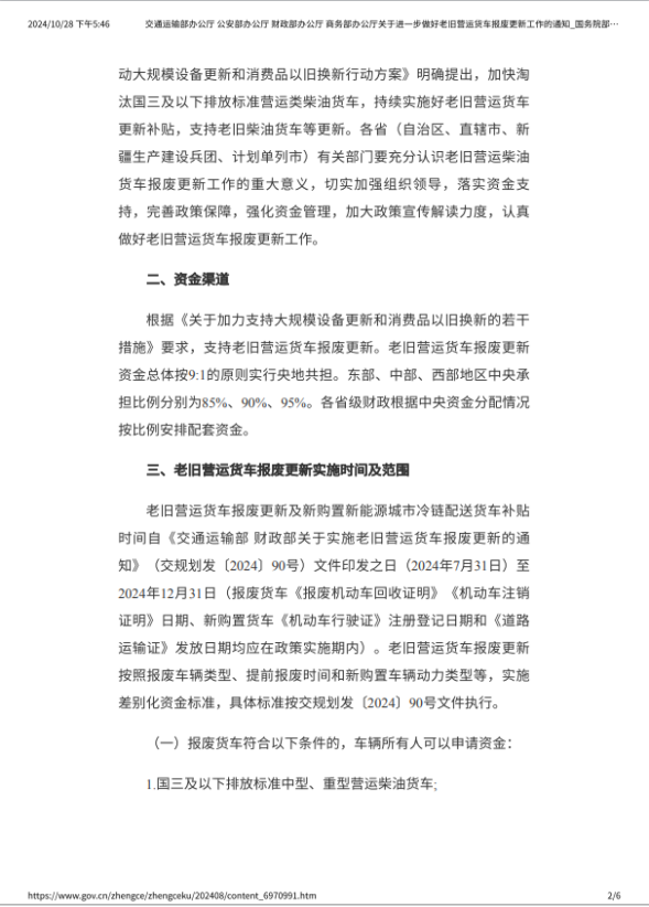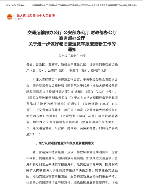 关于进一步做好老旧营运货车、城市公交车及动力电池报废更新工作的通知