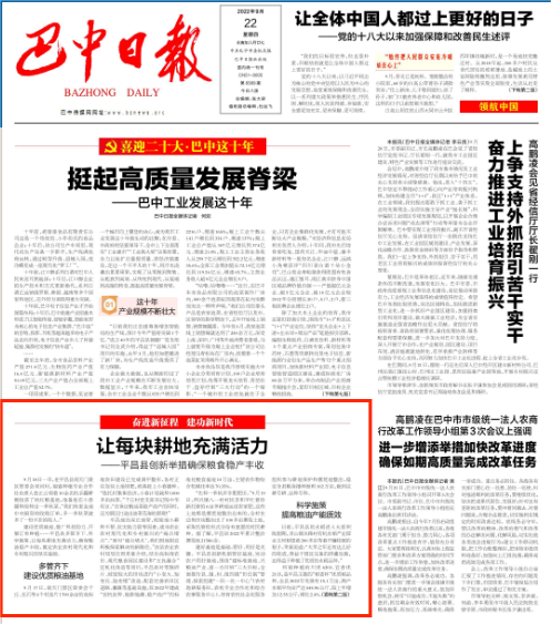 建设优质基地、推广科技助力、开展订单种植……平昌县多管齐下、科学施策,让每块耕地充满活力,确保粮油稳产丰收,奠定农业农村现代化和乡村振兴的坚实基础。