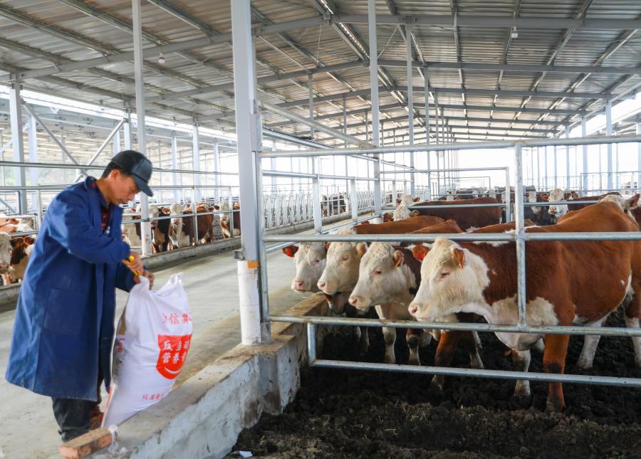 1月15日,在平昌县兰草镇梁铜村的肉牛养殖场,膘肥体壮的肉牛正在圈舍悠闲地吃着草料。不远处,业主王召国正挨个检查肉牛生长情况。“2023年已经出栏30多头,收入60多万元。目前存栏60多头肉牛。”王召国说。