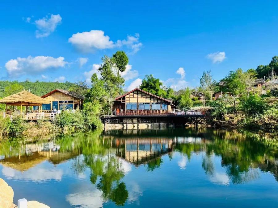 走进驷马镇双城村,当地一楼一底的乡间小房错落有致,水泥路连通院落,房前屋后花草点缀,游客邂逅山川美景。