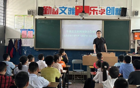 6月3日,平昌县网信办网络举报辟谣和网络普法小分队走进平昌县实验小学,开展“e起护苗”网络举报辟谣和网络普法进学校活动。活动中,平昌县网信办干部通过与学生面对面交流的形式,宣传了《未成年人网络保护条例》等法律法规,普及科学文明上网、识别举报违法和不良信息、抵制网络谣言等知识,进一步增强未成年人法治观念,培育健康向上的未成年人网络文化。