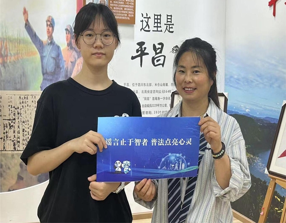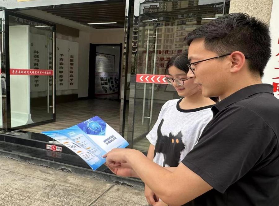 6月4日,平昌县网信办网络举报辟谣和网络普法小分队走进金宝社区,向社区居民发放网络举报辟谣等宣传资料,帮助社区居民提高识谣辨谣和反诈骗能力。