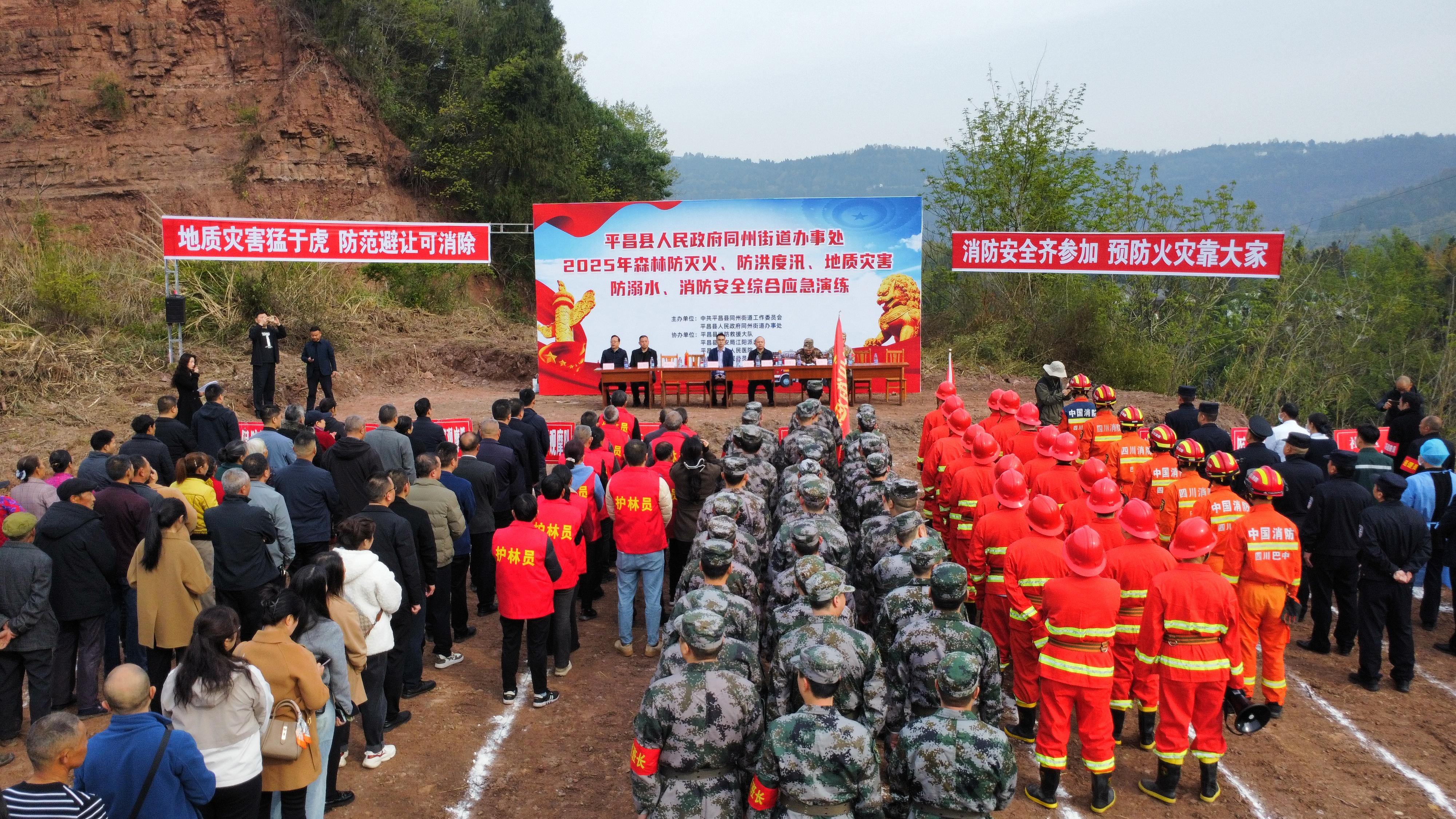 4月3日,同州街道办事处联合县消防救援大队、县第二人民医院、江阳派出所等单位,在蜈蚣社区柏林沟举行了包括森林防灭火、防洪度汛、地质灾害、防溺水和消防安全在内的多项综合应急演练。