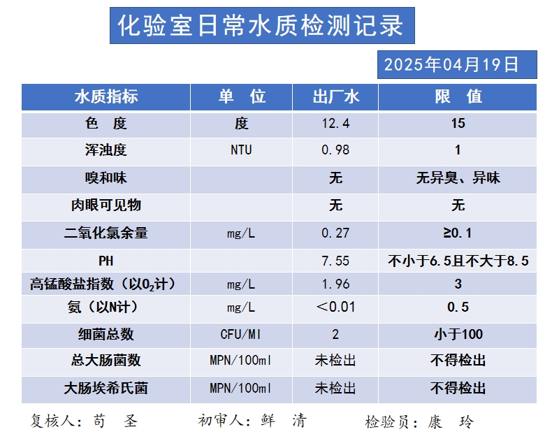 日常水质检测记录(4.19)